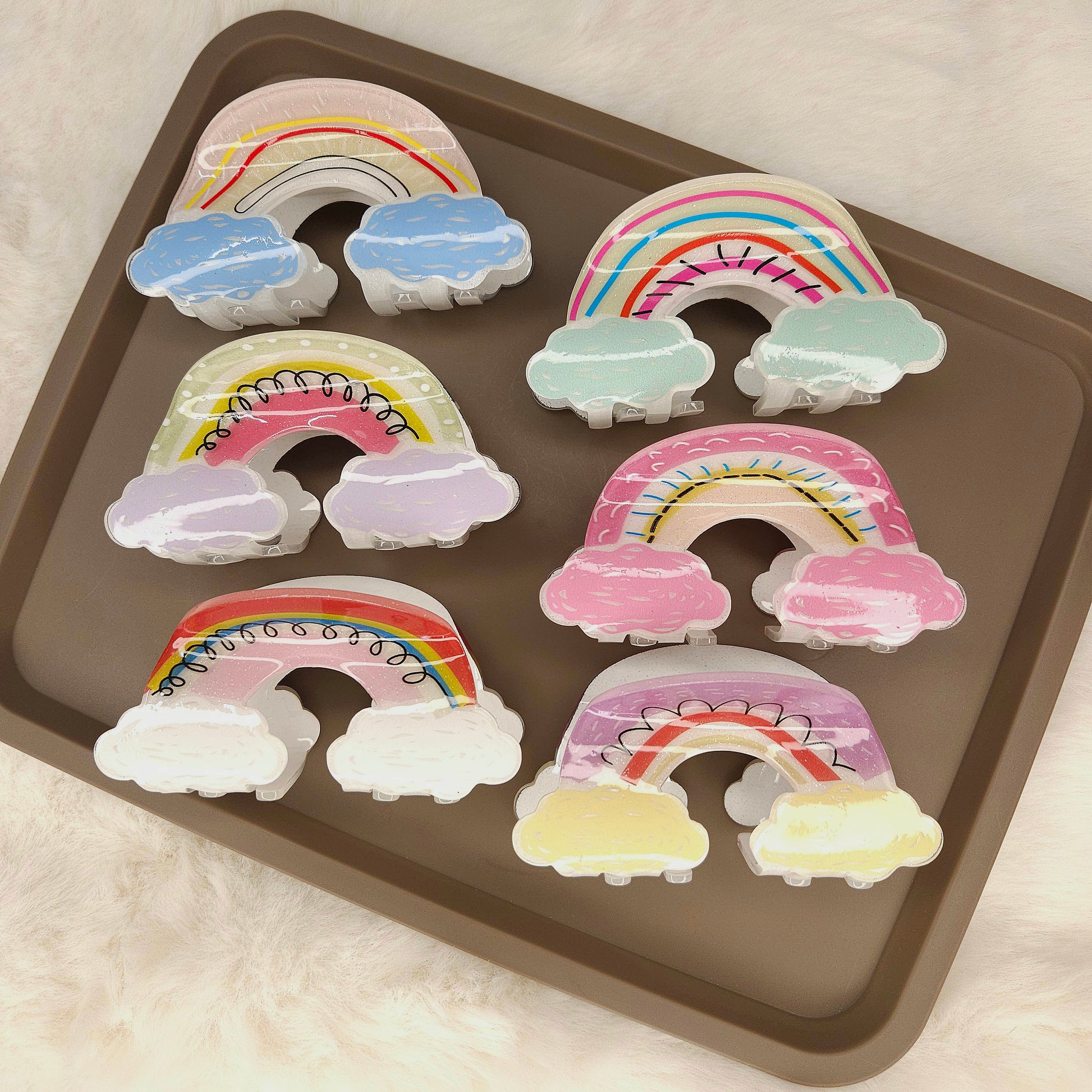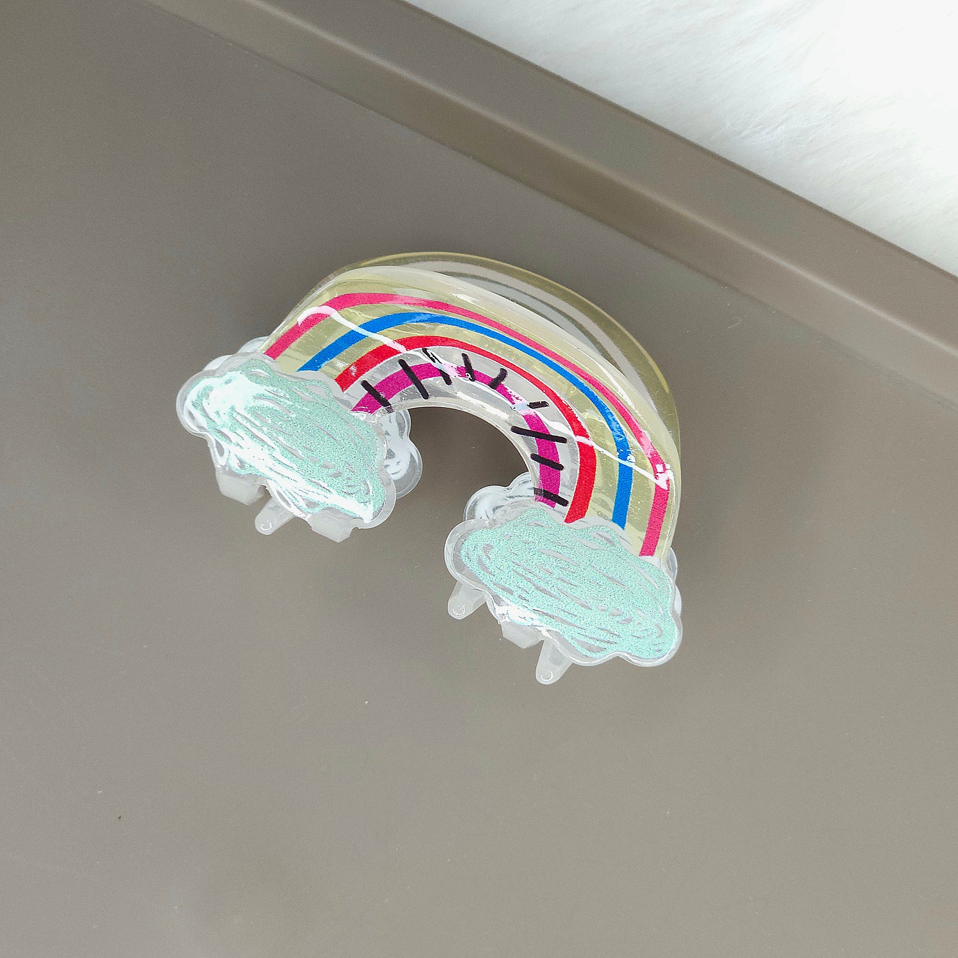 Brighten up your everyday look with our Pastel Rainbow Hair Claw – a charming blend of style and function. It is totally pin-worthy, and has aesthetic and fun vibes. Designed with a colorful Pastel rainbow arch and fluffy cloud details, this clip adds a playful yet dreamy touch to any hairstyle.