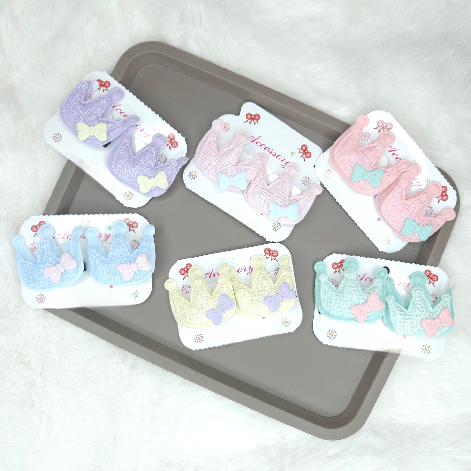 Get your little ones ready for a royal adventure with our Glitter Puffy Crown Hair Clips! These fun and playful clips feature a sparkling crown design in pastel colors, complete with a charming bow. Perfect for adding a touch of magic to any hairstyle. (No need to search for the pot of gold, these clips are a treasure on their own!)