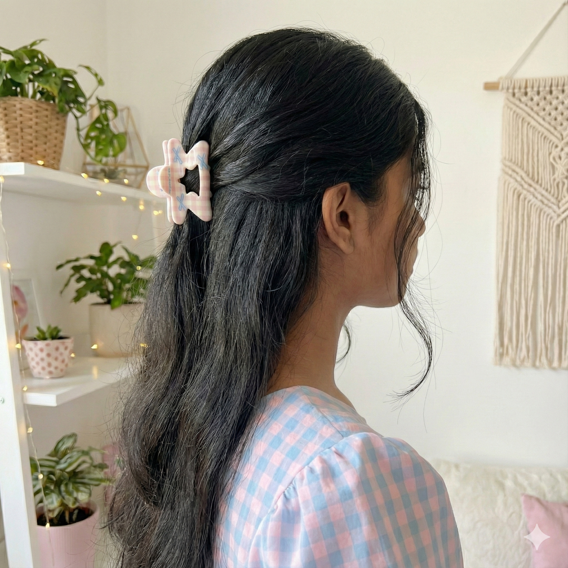Whether you're heading to work, running errands, or meeting friends, this hair claw effortlessly combines functionality with adorable style.