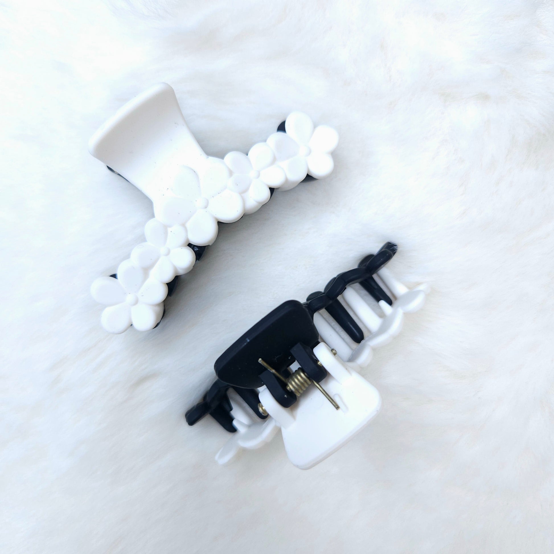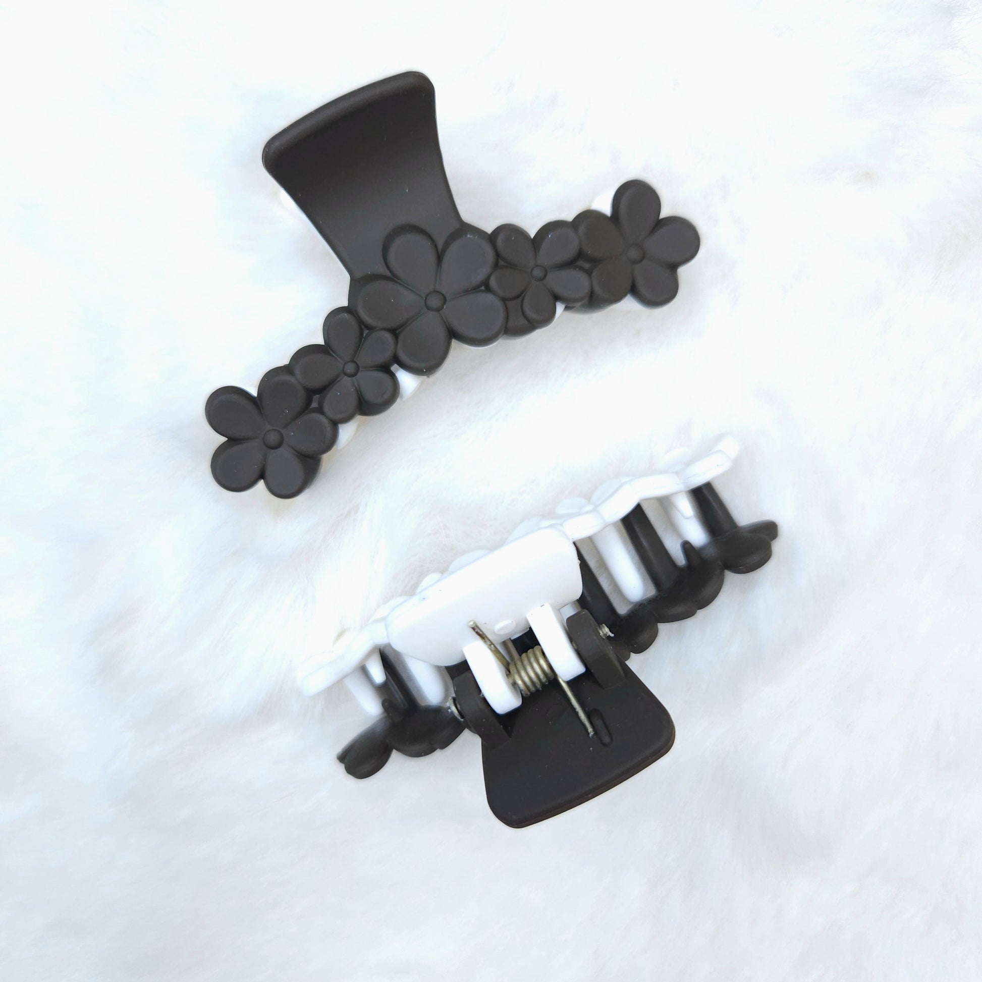 Elevate your everyday hairstyle with this premium matte-finish hair claw featuring an elegant dual-tone floral loop design.