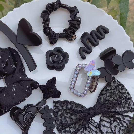 From sleek claw clips to dramatic lace bows, this collection is designed for those who know that black isn't just a color—it's a lifestyle.