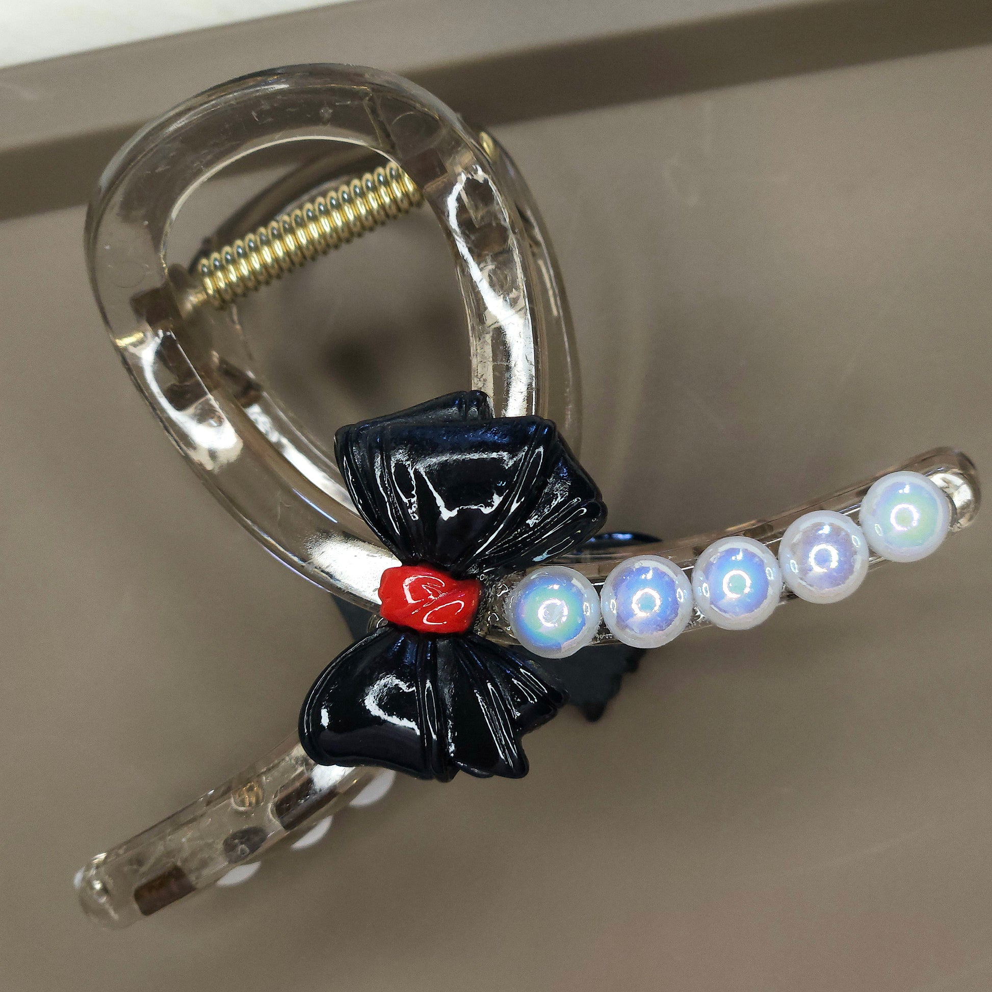 Make a statement with our Pearl Bow Charm Loop Hair Claws. The perfect accessory for a sophisticated and elegant look. Made with high-quality pearls and a charming bow design, these hair claws elevate any hairstyle to a luxurious level. Express your unique style with delicate and exclusive details.